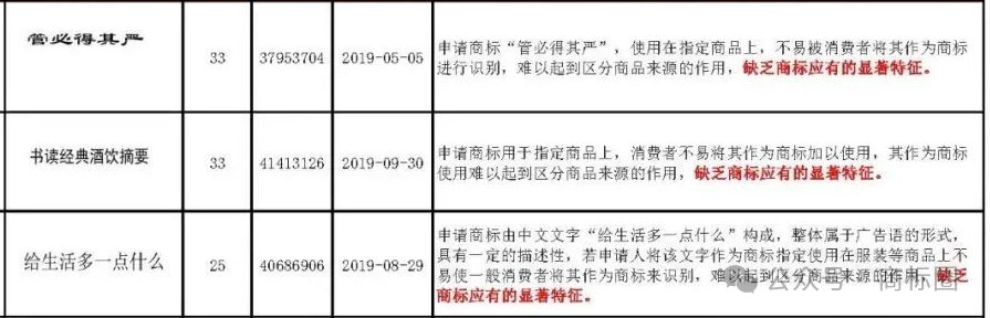 1.违反禁止性规定:最常见的是“易使公众对商品的质量等特点或产地发生误认”以及“不良影响”而被驳回。