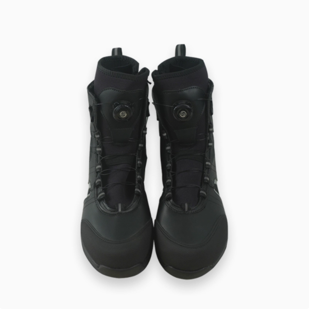 水域救援靴在设计上充分考虑了在水上和陆地不同环境下的使用需求。高帮系带设计能够稳固脚踝,减少在复杂地形行走或水流冲击时脚踝扭伤的风险。防穿刺鞋头可有效防止脚部被水下尖锐物体刺伤,无痕防滑大底提供强大的抓地力,无论是湿滑的河岸、长满青苔的礁石,还是湍急的水流底部,都能让救援人员站稳脚跟。侧边滤水孔的设计则实现了快速排水,避免靴内积水影响行动。此外,部分救援靴后跟兼容脚蹼,方便救援人员在需要时切换到水中快速游动模式,适应不同的救援场景。